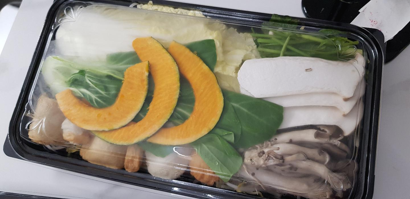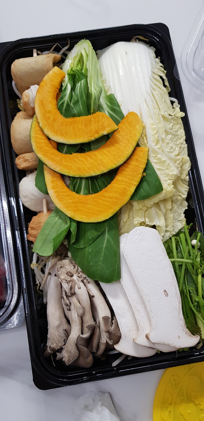 고기가 신선하고 단호박에 버섯과 어묵, 미나리까지